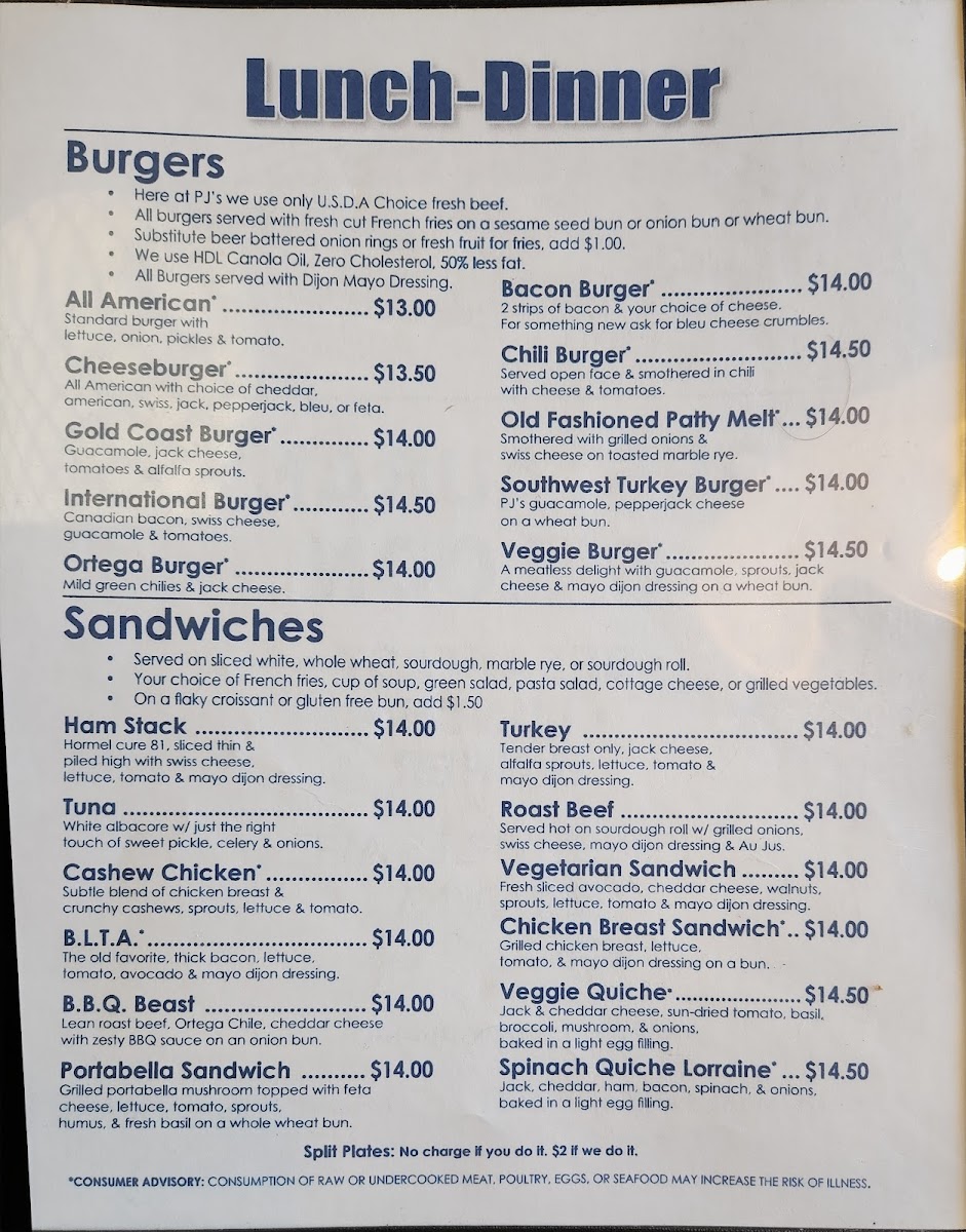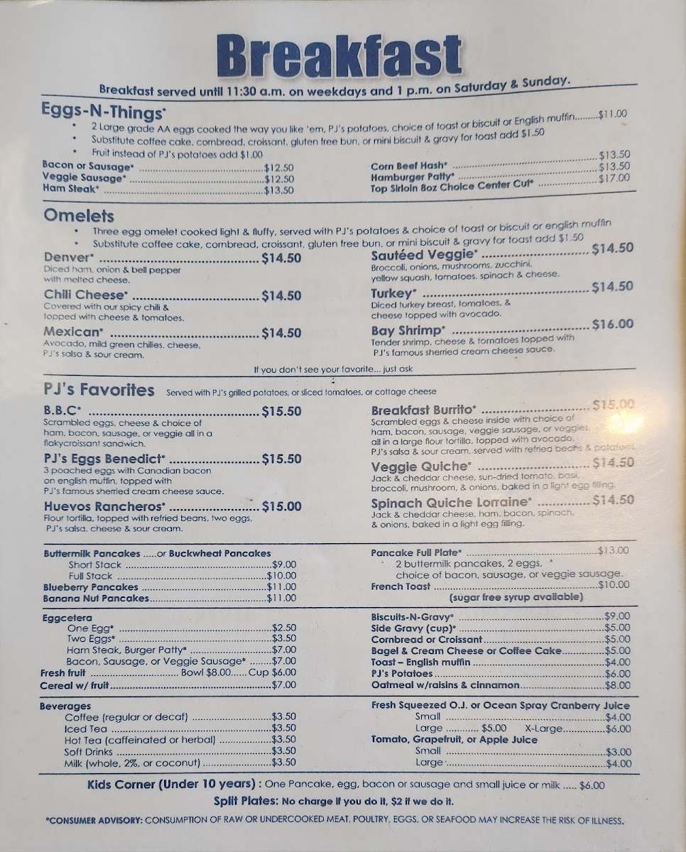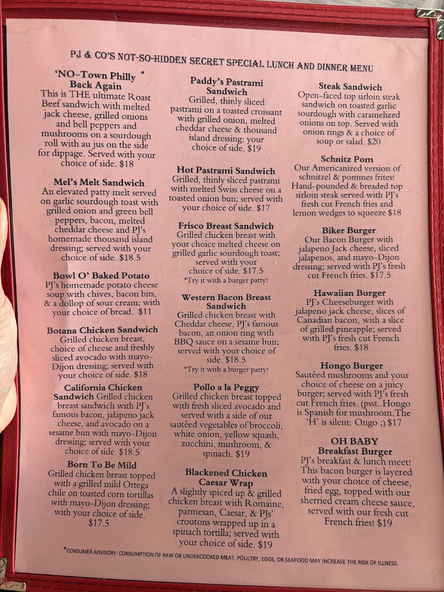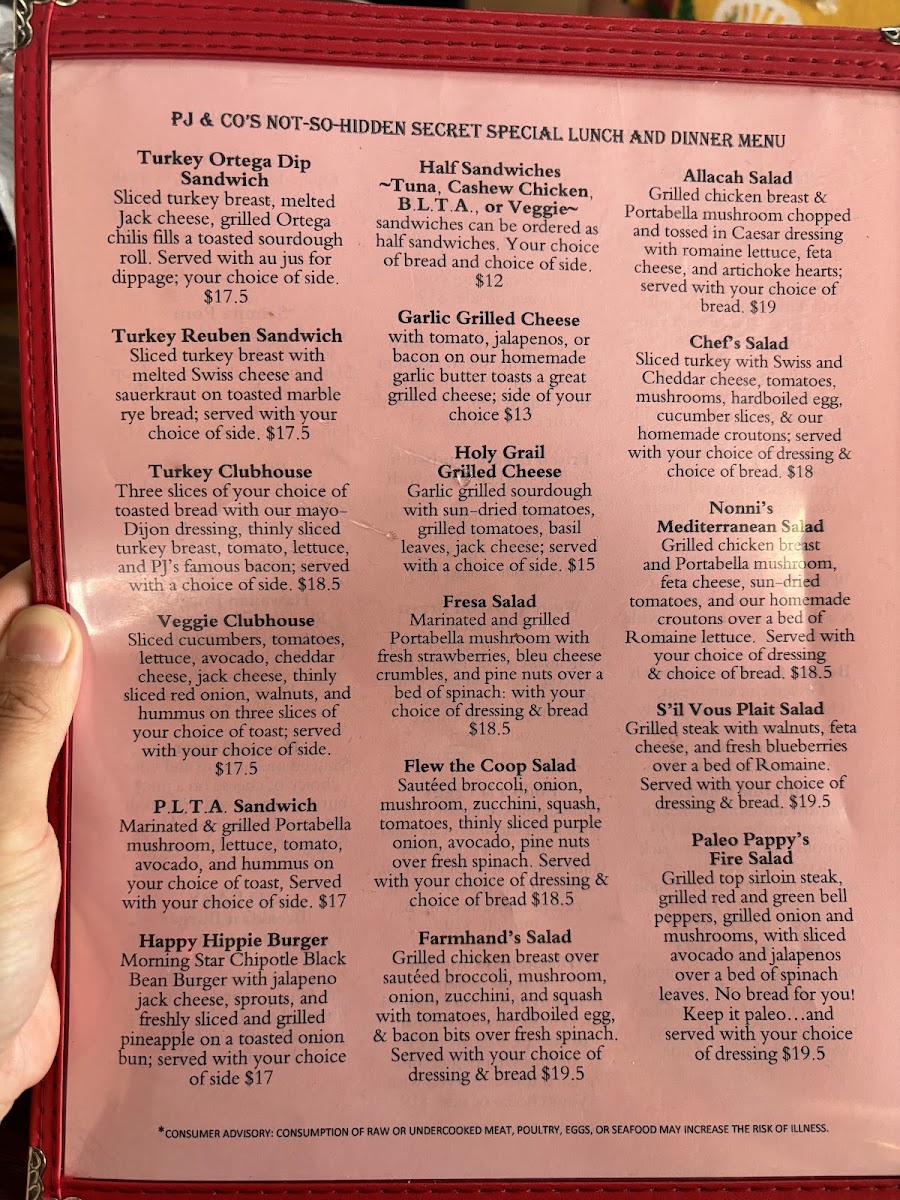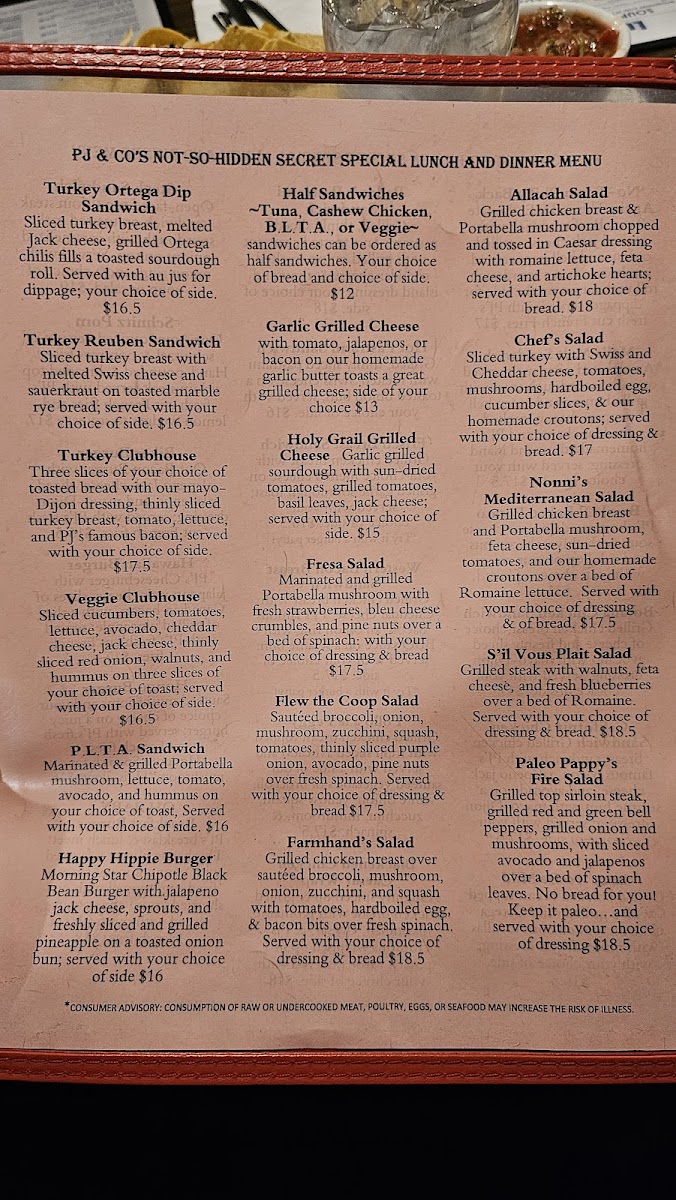 PJ & Company Menu